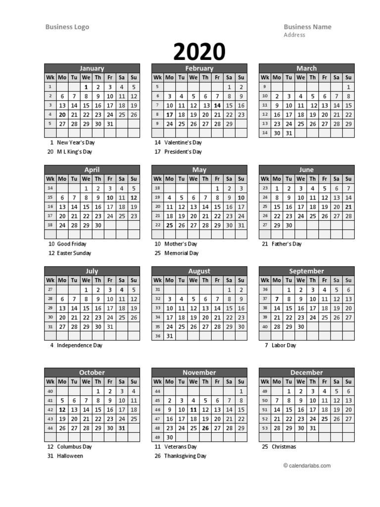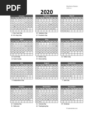 2020 Yearly Business Calendar Week No 05 Pdf Holidays Observances